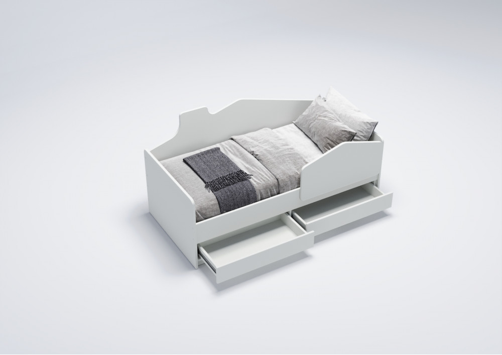 Особенностью этой кровати является задний борт, стилизованный под домик, что создает атмосферу увлекательной игры и фантазии для вашего малыша. Невысокая конструкция кровати обеспечивает безопасность и легкий доступ для ребенка.