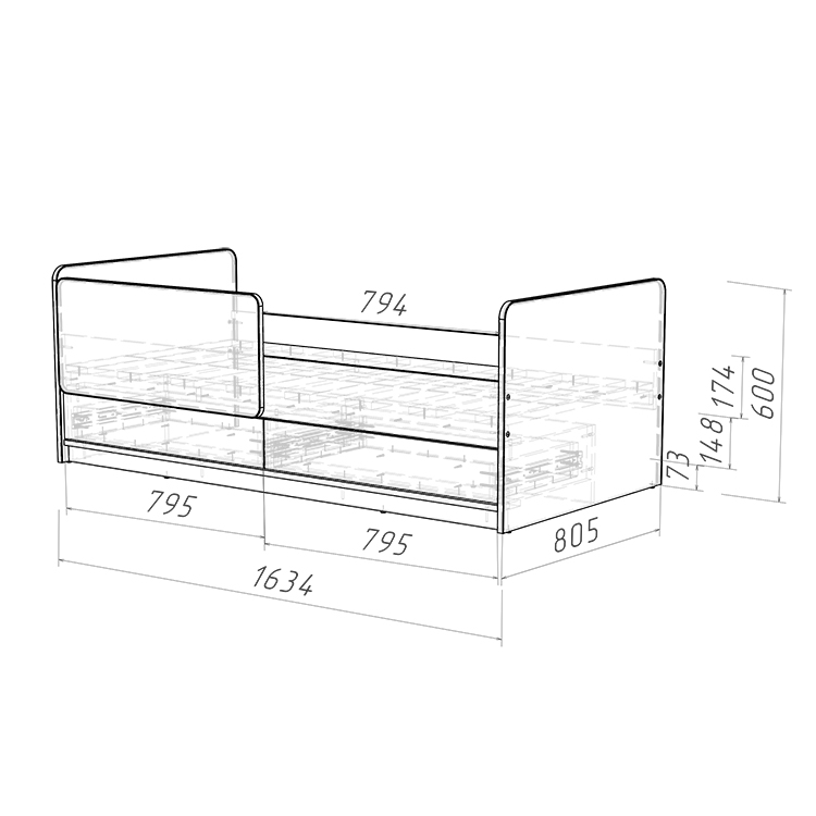 Длина/Ширина/Высота (мм) 1634 × 805 × 600
