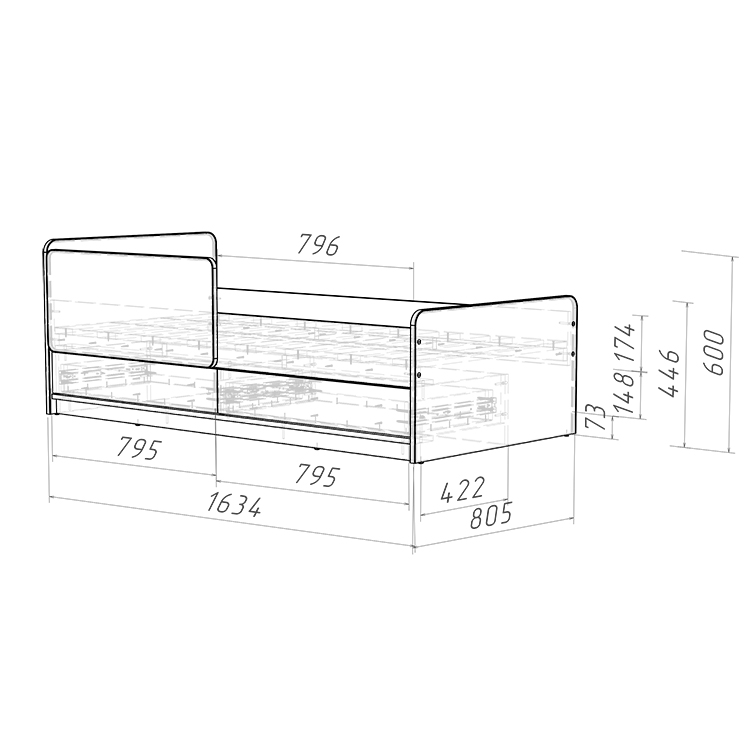 Длина/Ширина/Высота (мм) 1634 × 805 × 600